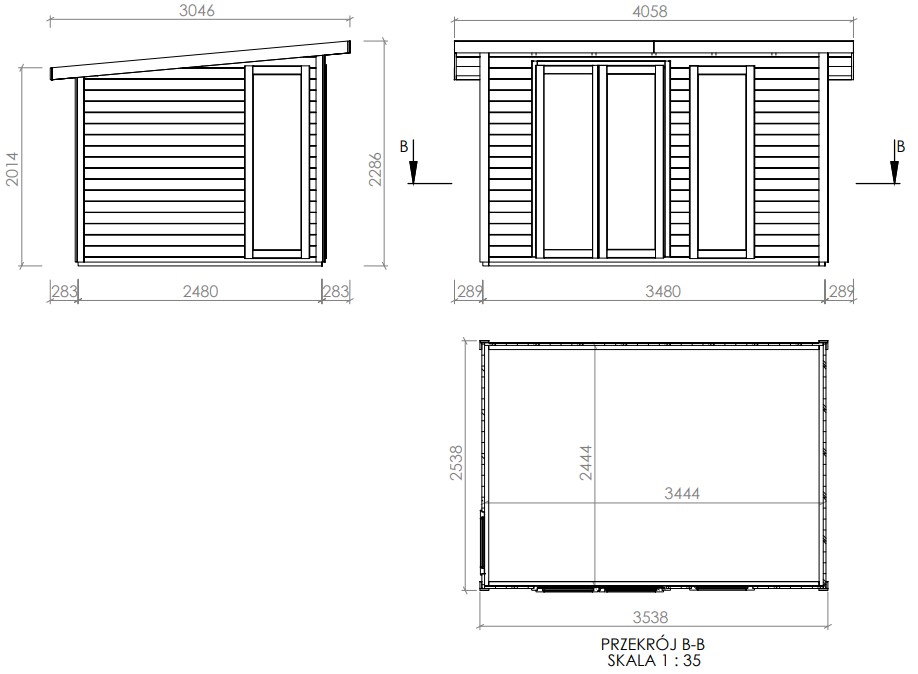 | Wymiary zewnętrzne z dachem | 405,8 x 304,7 cm |