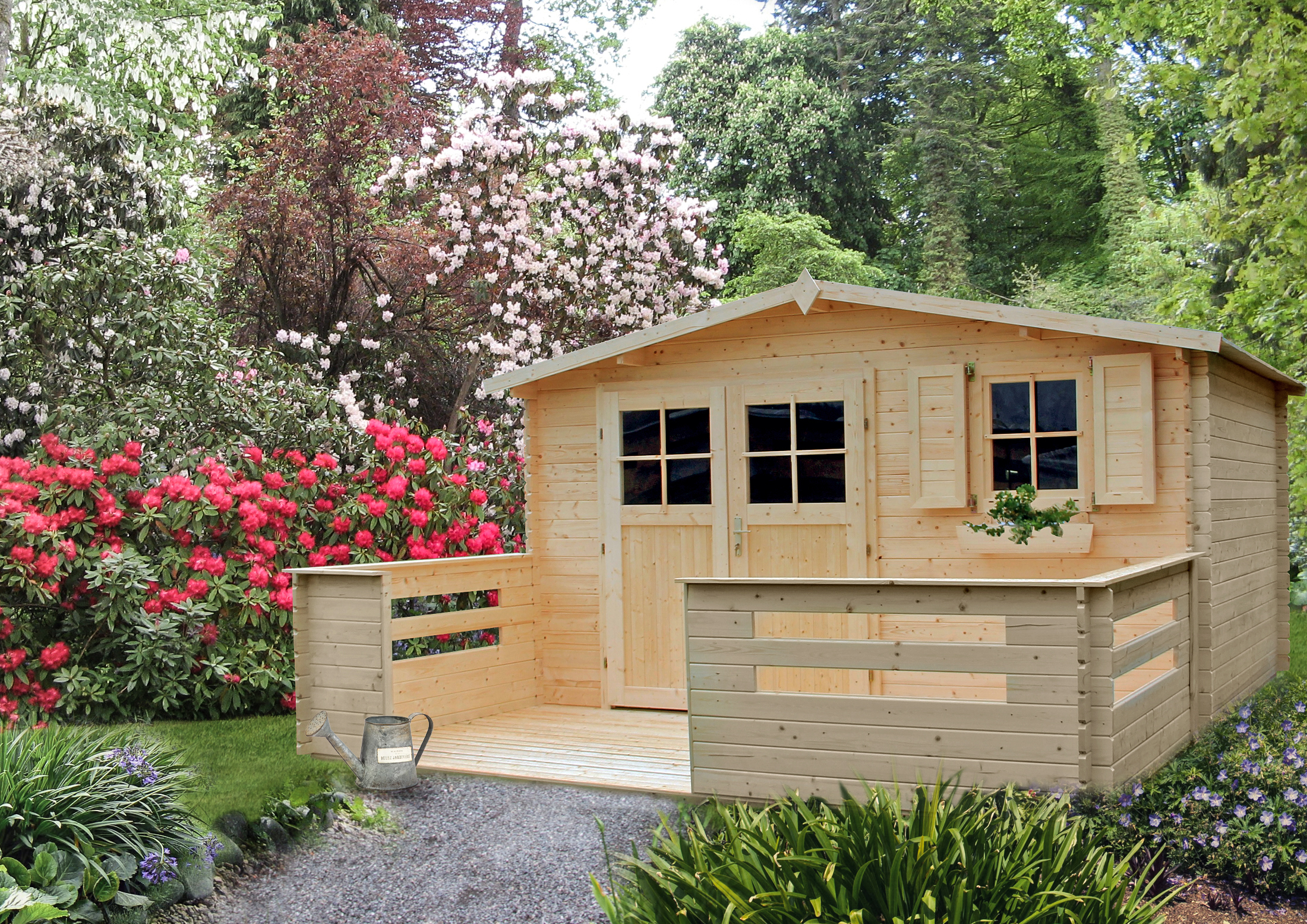 Pierwsze zdjęcie przedstawia podstawową wersję domku. Kolejne zdjęcia mogą przedstawiać przykładowe konfiguracje z dodatkowymi opcjami wyposażenia – elementy widoczne na wizualizacjach nie zawsze są częścią zestawu i należy je dobrać podczas konfiguracji produktu.