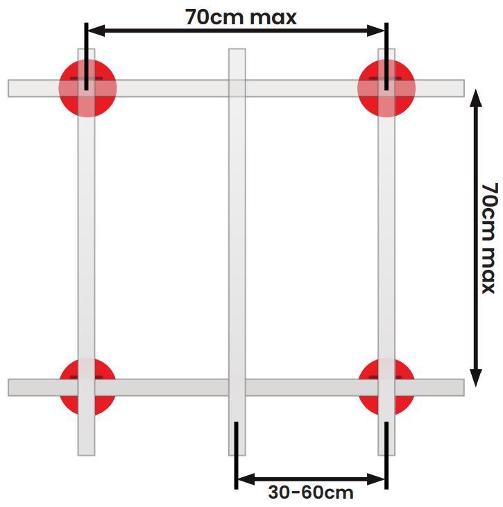 | Maksymalny rozstaw podpór | 70 cm |