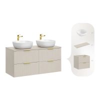 • Kompleksowe rozwiązania – gotowe zestawy, które łączą szafki, blaty i umywalki, ułatwiając aranżację łazienki.