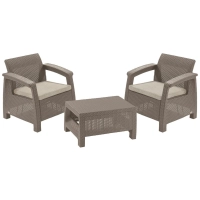 - Kompleksowe rozwiązanie: Zestawy mebli wypoczynkowych składające się z sofy, foteli i stolika, które tworzą spójną aranżację przestrzeni ogrodowej.