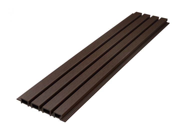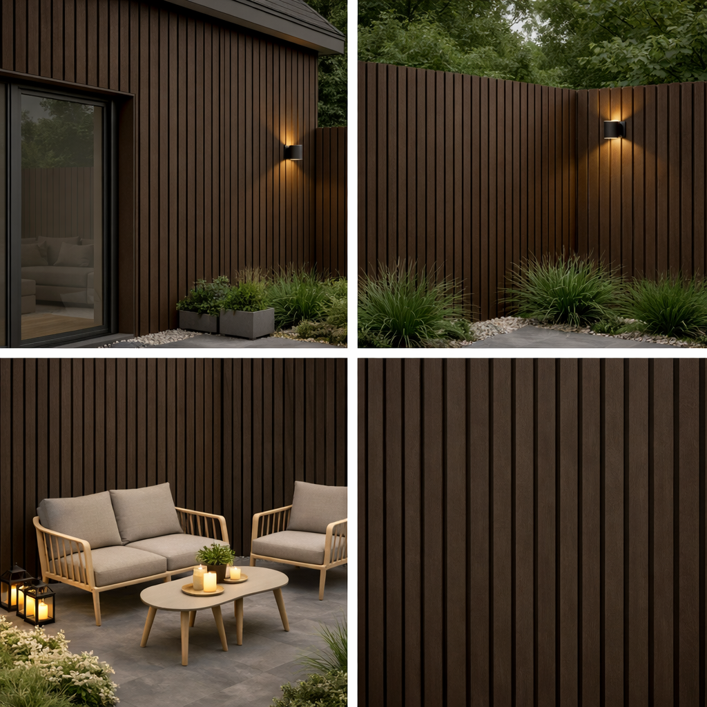 Panel wykonany został z trwałego kompozytu WPC odpornego na wilgoć, wodę, promieniowanie UV oraz zmienne warunki atmosferyczne, dzięki czemu doskonale sprawdza się w przestrzeni zewnętrznej przez cały rok.