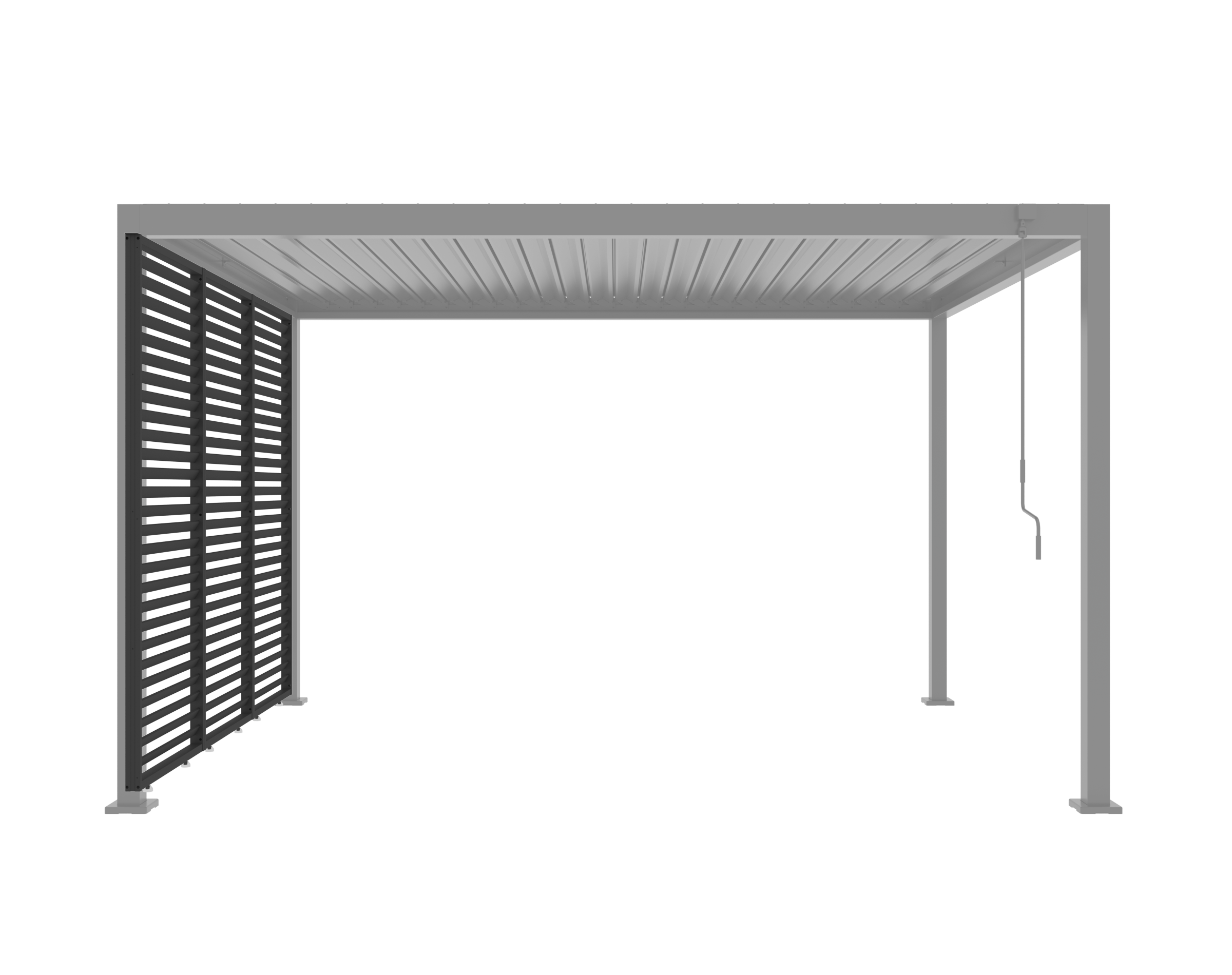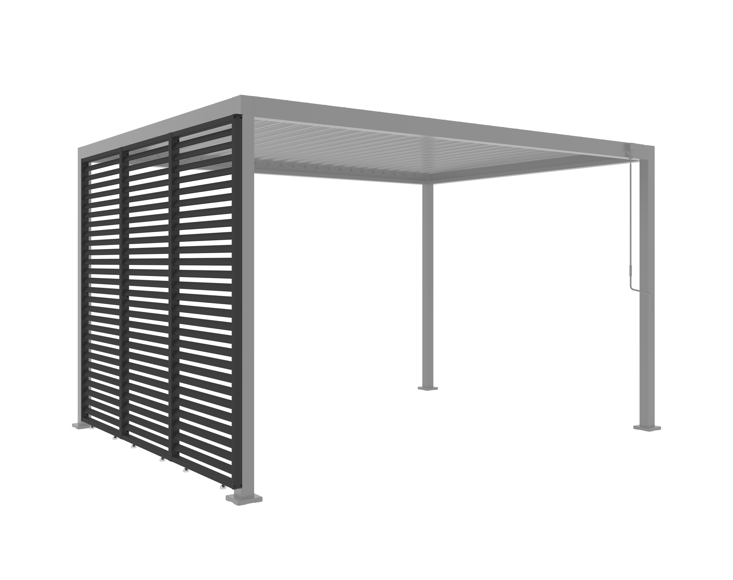 Panel żaluzjowy boczny do pergoli NORDVIC SOLA i VIKEN to trwały element zabudowy, który zwiększa prywatność i pozwala lepiej osłonić strefę wypoczynkową. To rozwiązanie dla osób, które chcą stworzyć bardziej zabudowaną i komfortową przestrzeń bez rezygnowania z nowoczesnego wyglądu pergoli.