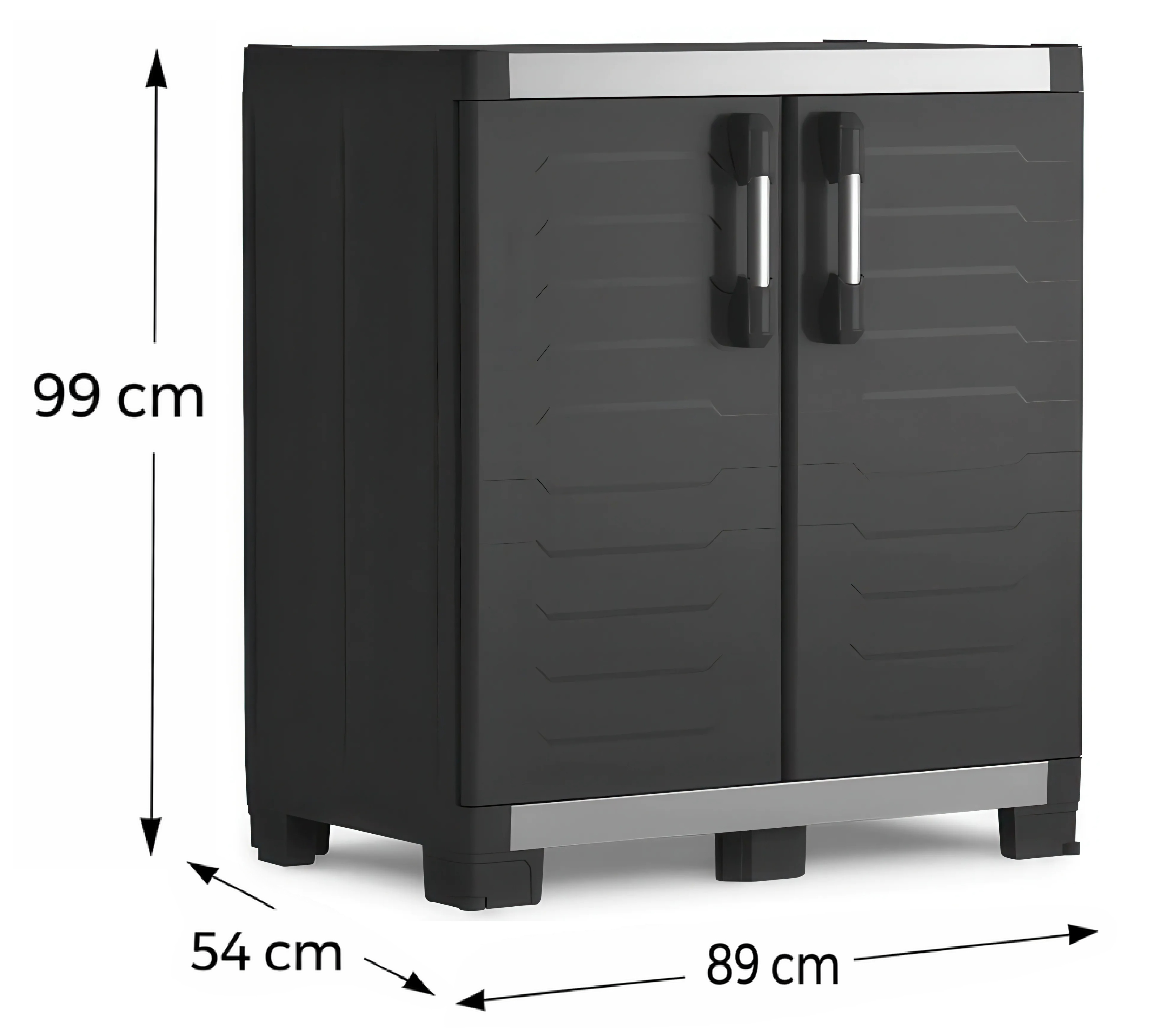 - Wysokość 99 cm – idealna jako niska, ale bardzo pojemna szafka garażowa