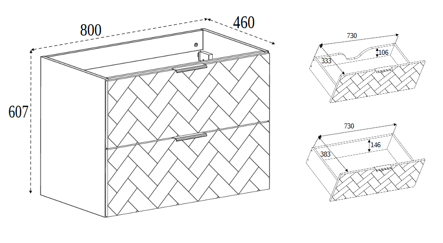 Projektując kolekcję TREND, naszym głównym założeniem było wyróżnienie jej na tle dostępnych mebli łazienkowych. Fronty we wzorze jodełki angielskiej to nowoczesny i stylowy design, który wkomponuje się w każdy styl aranżacyjny łazienki.