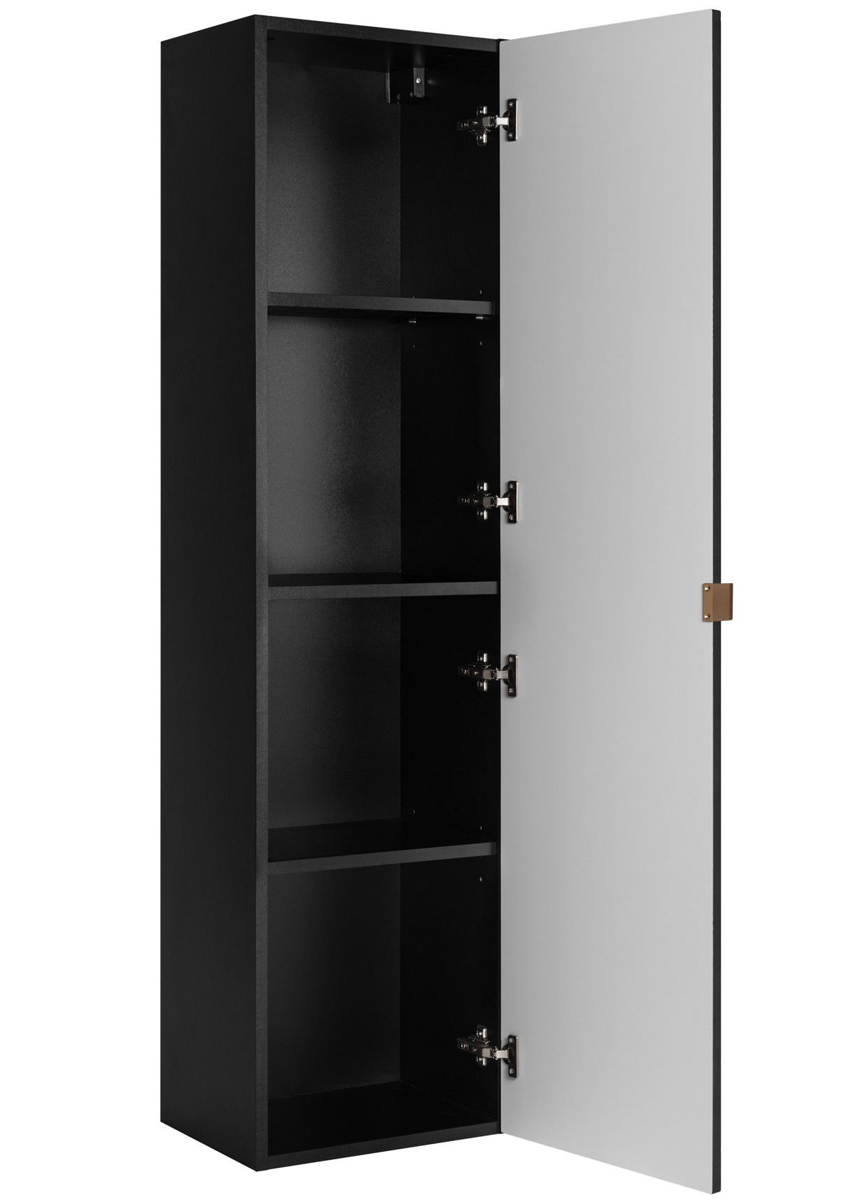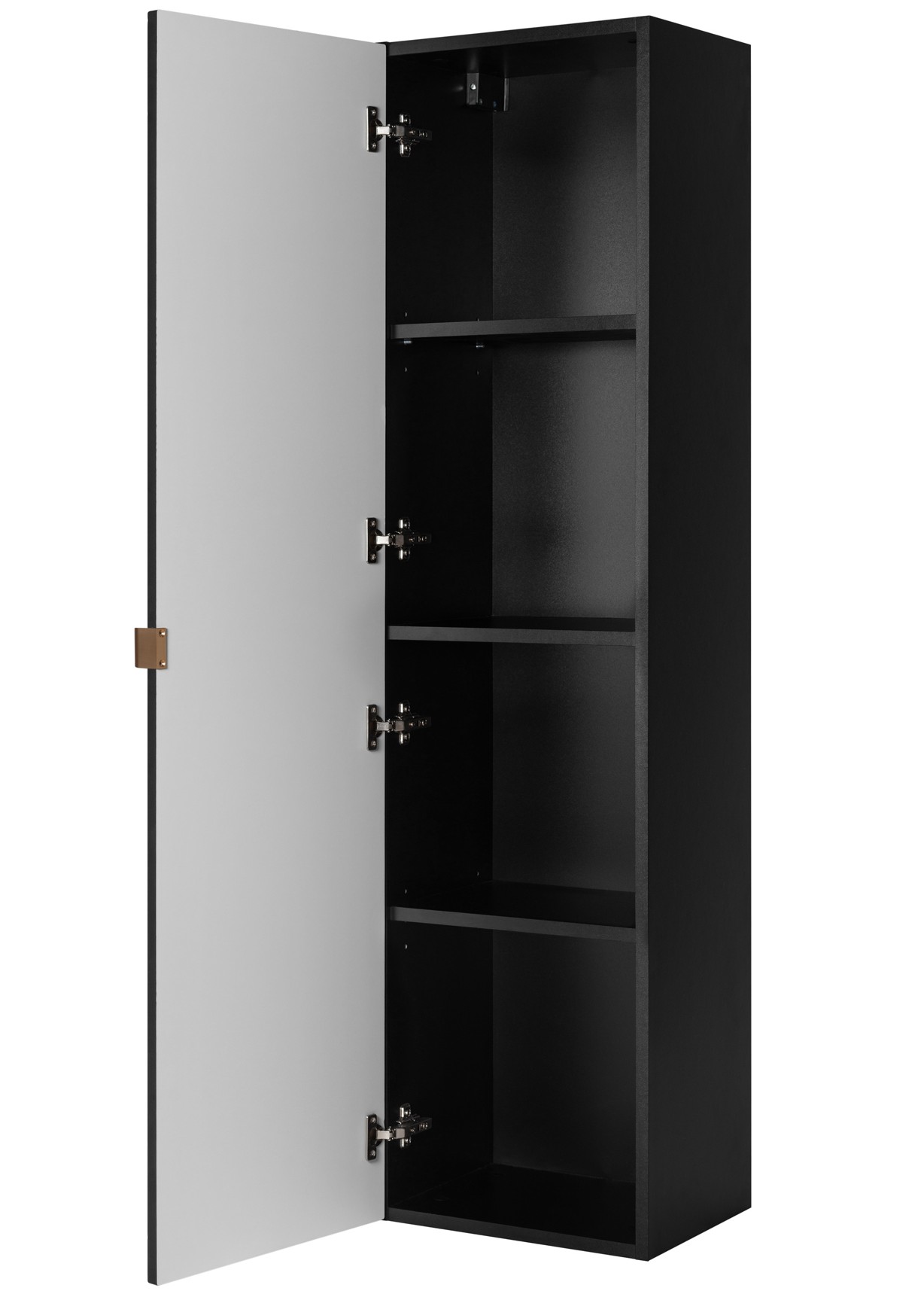 Szafka wyposażona jest w zawiasy, które posiadają funkcję cichego domyku SOFT CLOSE. Dzięki temu korzystanie z szafki jest komfortowe i bezgłośne. Możliwość regulacji wysokości górnej i dolnej półki.