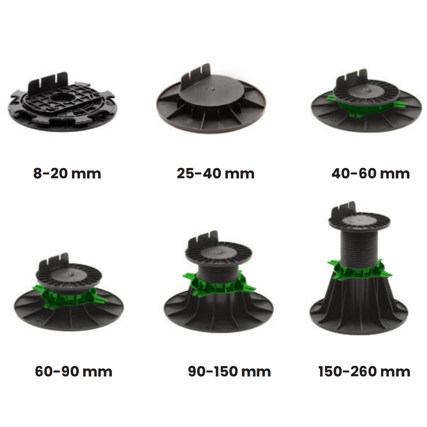 Dzięki regulacji wysokości za pomocą pierścienia wspornik pozwala na dokładne ustawienie poziomu co do milimetra. Stabilna konstrukcja oraz wysoka nośność – powyżej 1 tony na wspornik – gwarantują bezpieczeństwo i trwałość całej powierzchni tarasu.